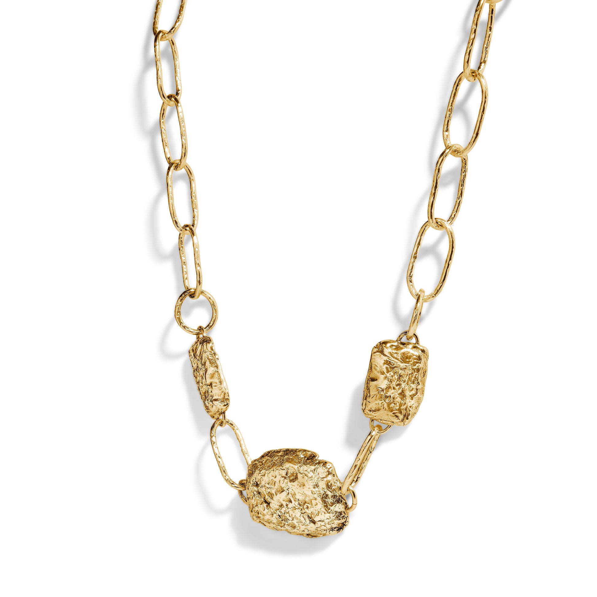 Handmade sterling silver chain with lost wax carved with organic shapes and a rough texture. 21 inches long.