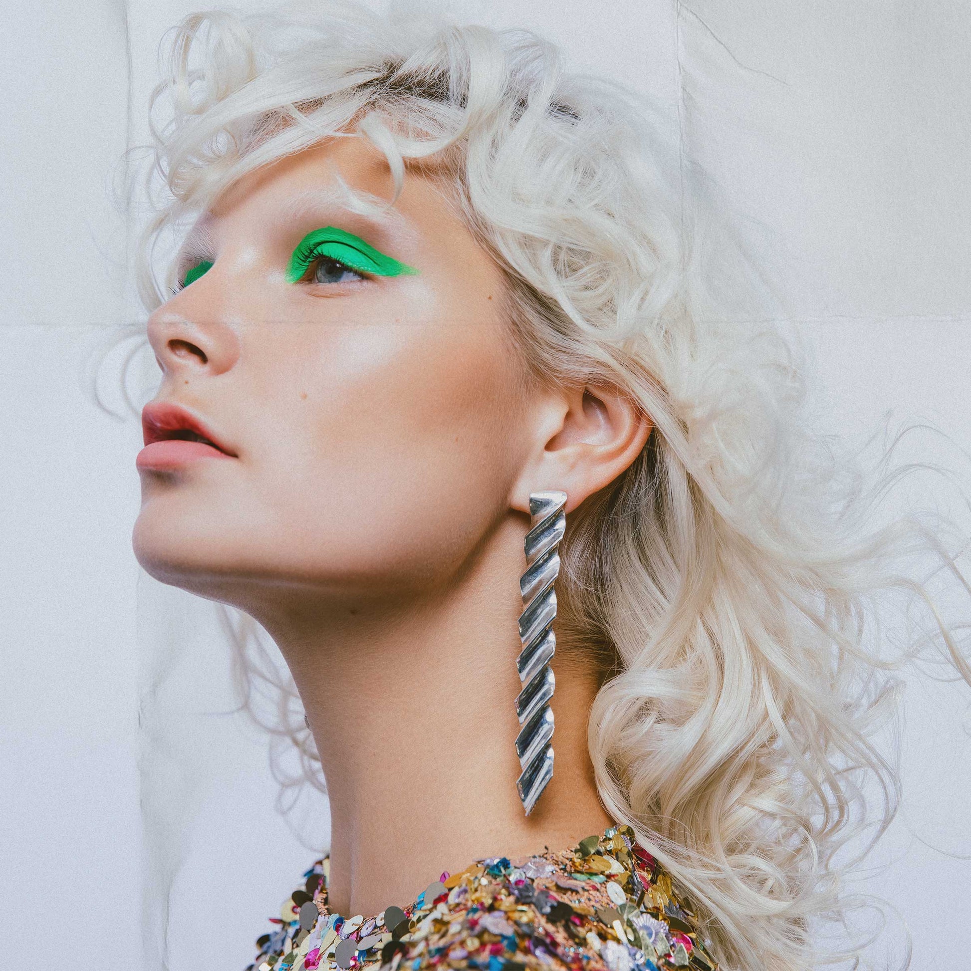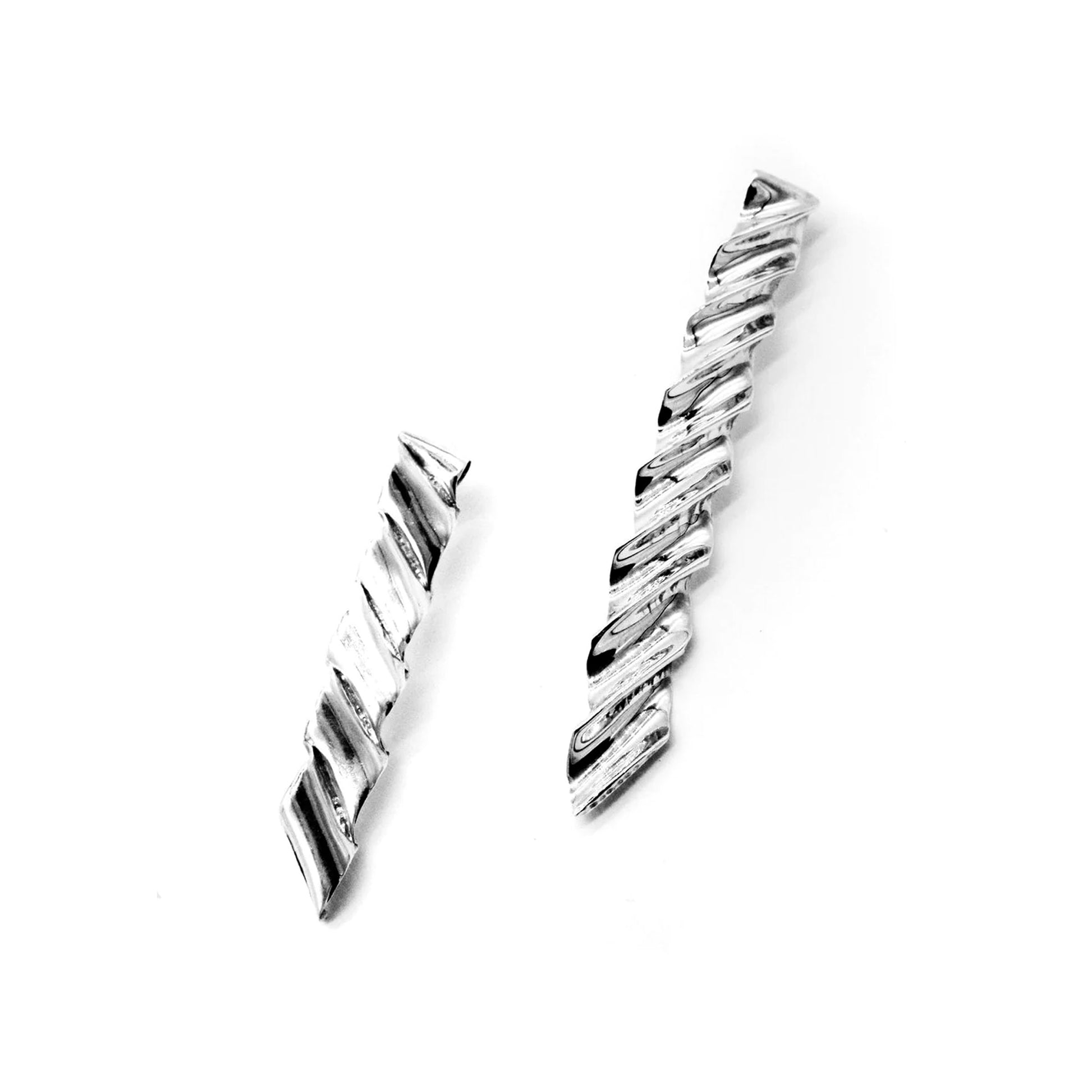 Pair of mismatched, sculptural earring in sterling silver made using fold form technique.