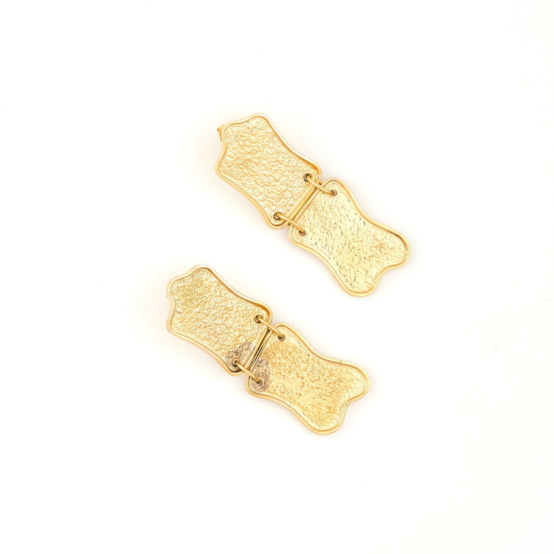 14 karat gold plated brass puzzle shaped earrings with gold filled posts. This pair of earrings are two puzzle pieces linked together to make a subtle statement.