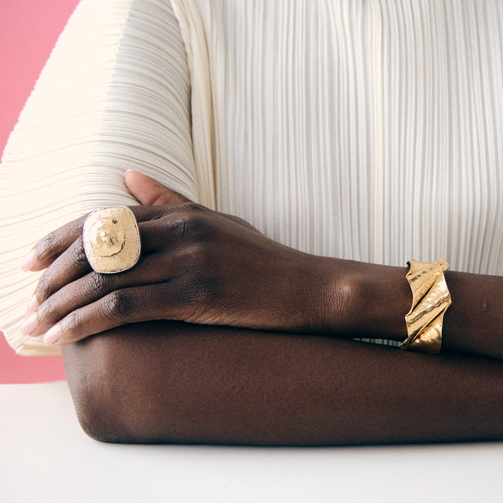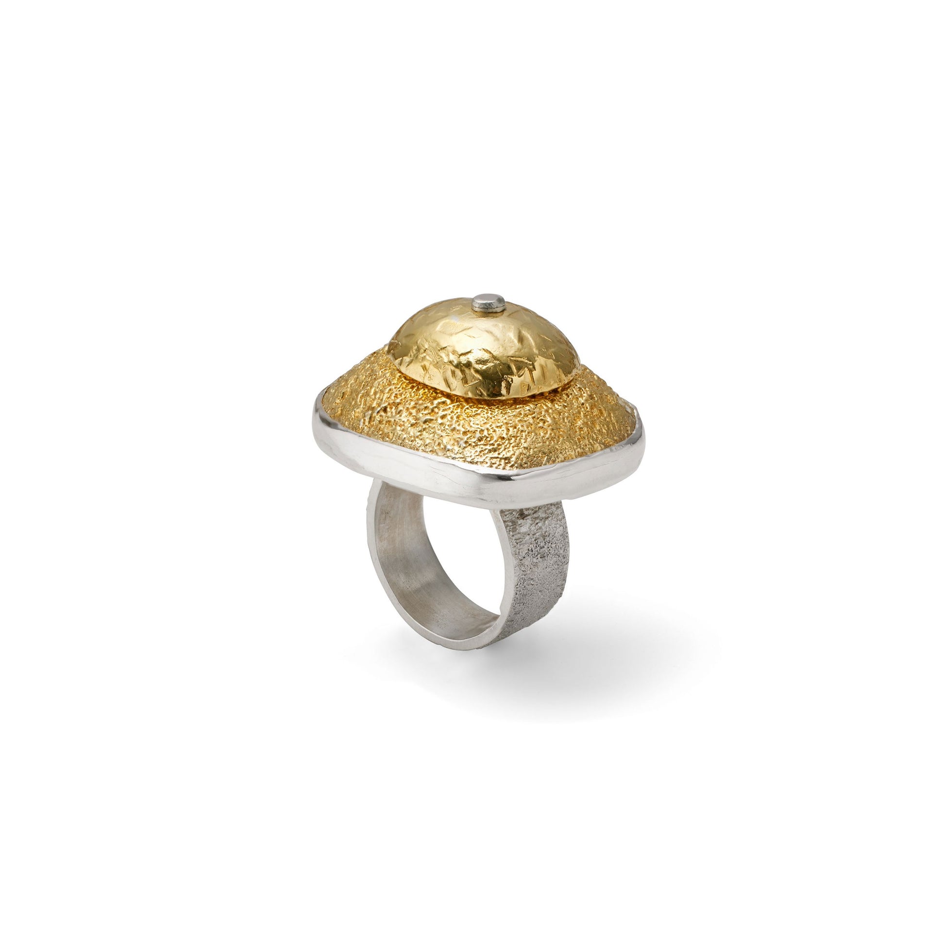 14K vermeil and sterling ring made using riveting technique with hammered textural elements.