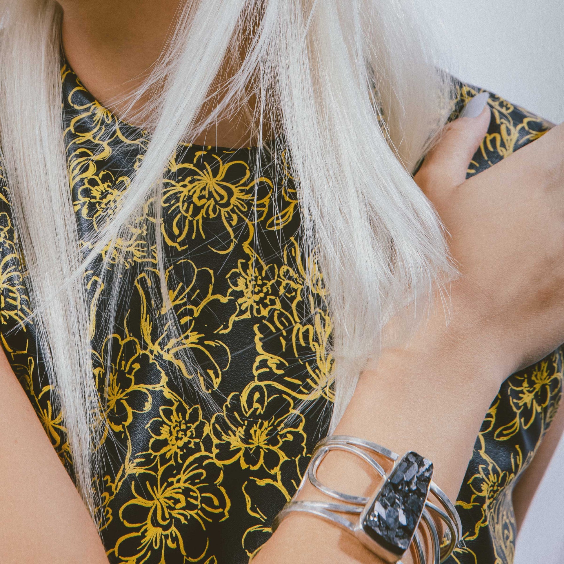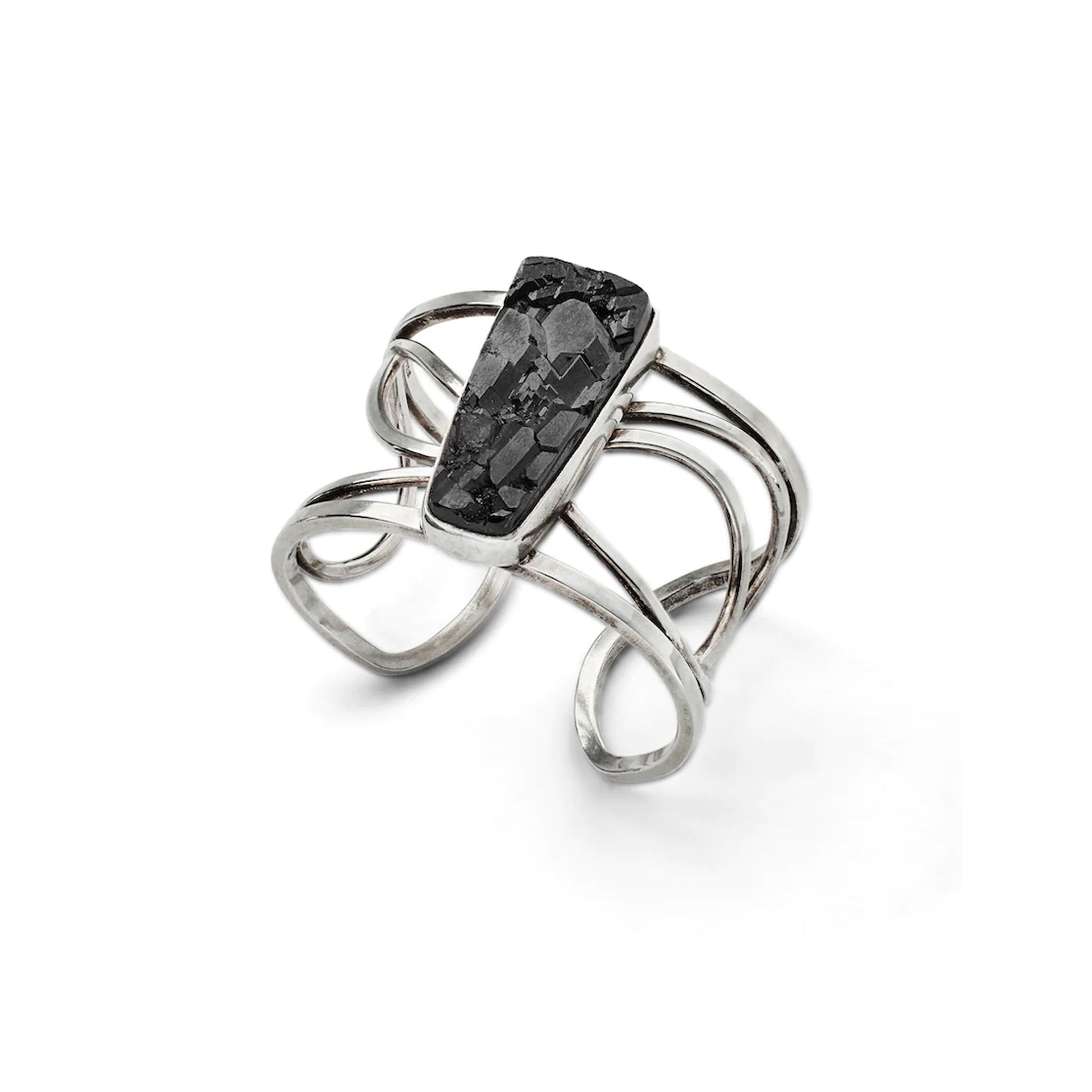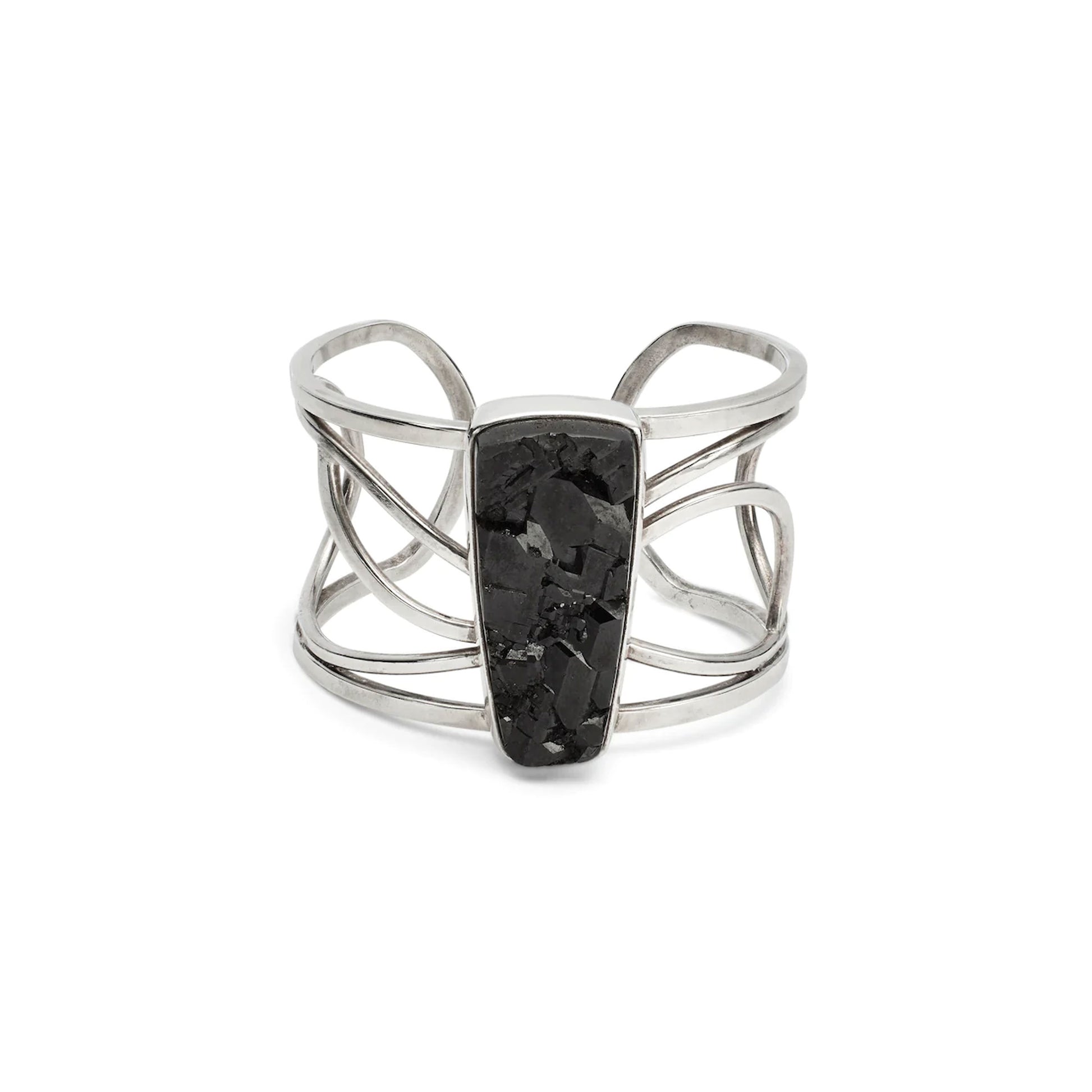 This handmade, one of a kind elegant and dramatic cuff bracelet is made with a black garnet stone and sterling silver.