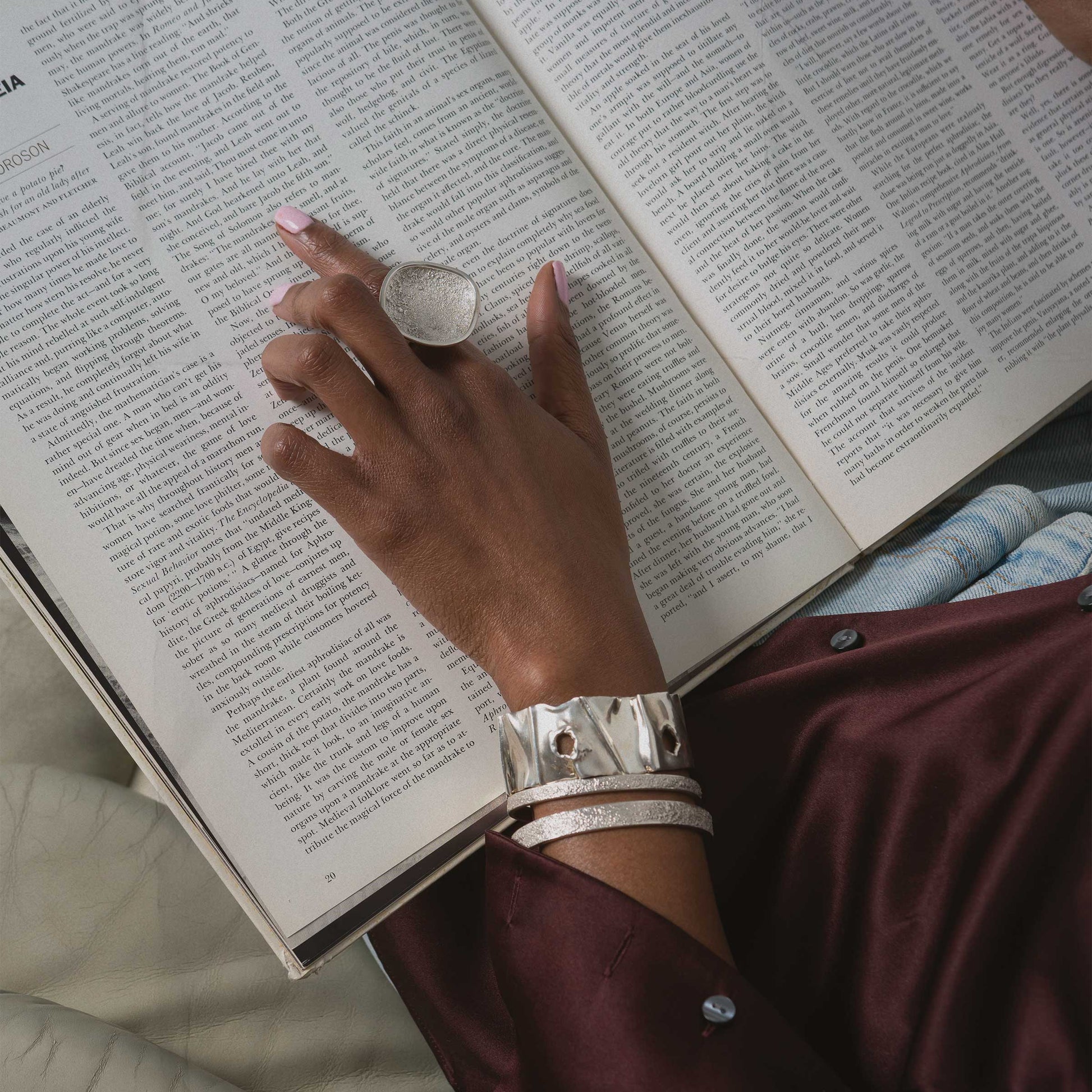 This bold and simple ring is inspired by the work of Brutalist architects and is made of sterling silver. The rough and smooth textures create a wonderful tension.