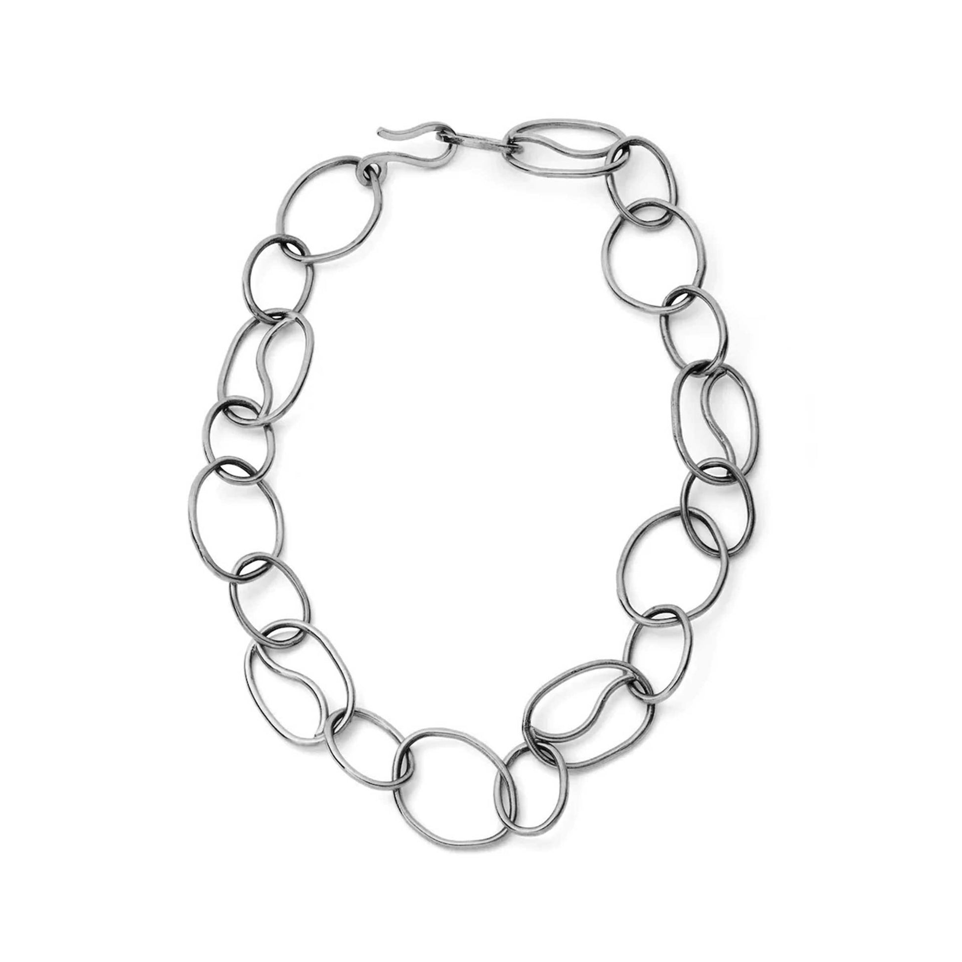 This simple, layerable chain is made of sterling silver and features a mix of unique shapes.