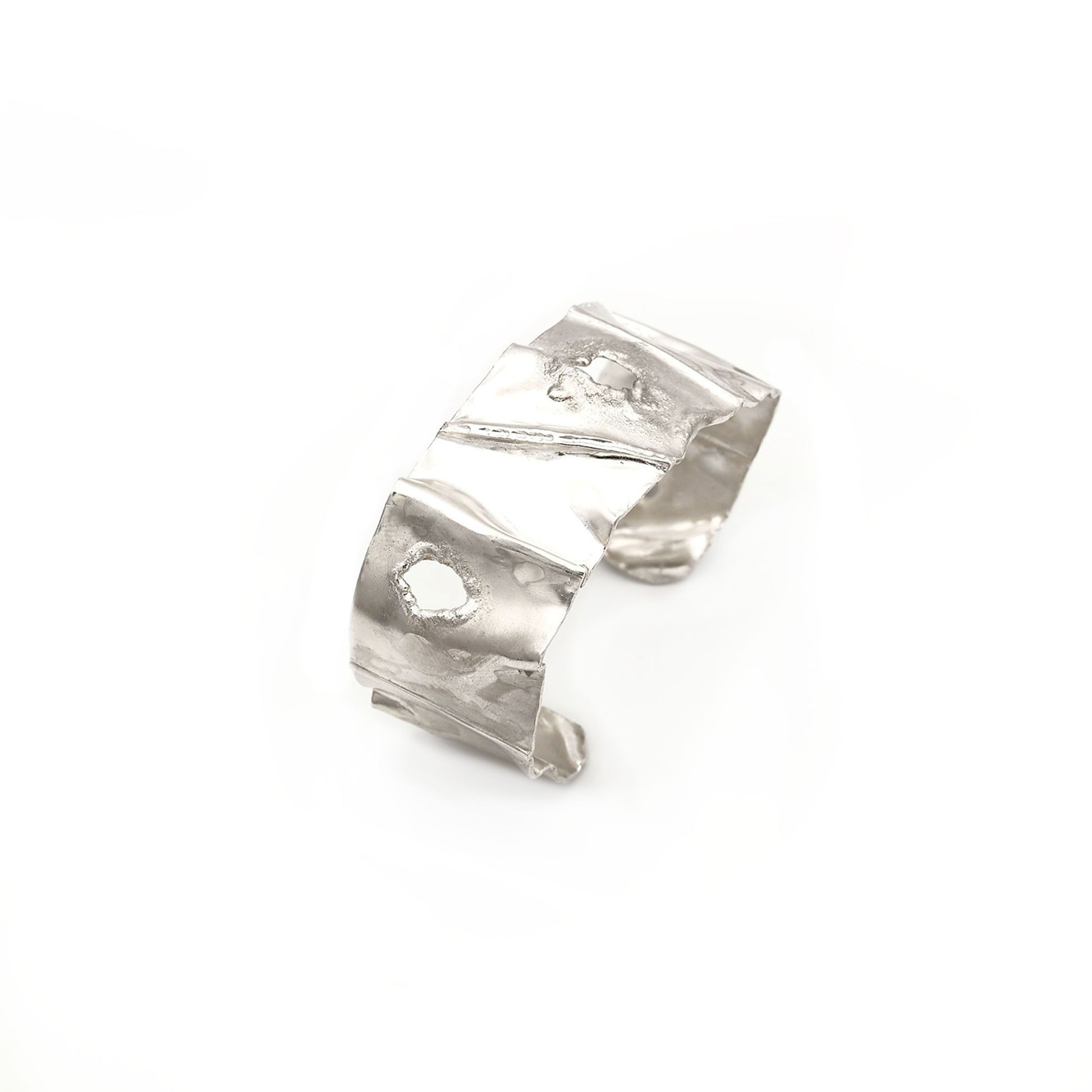 Sterling silver bracelet made using fold form technique creates a unique, sculptural piece.