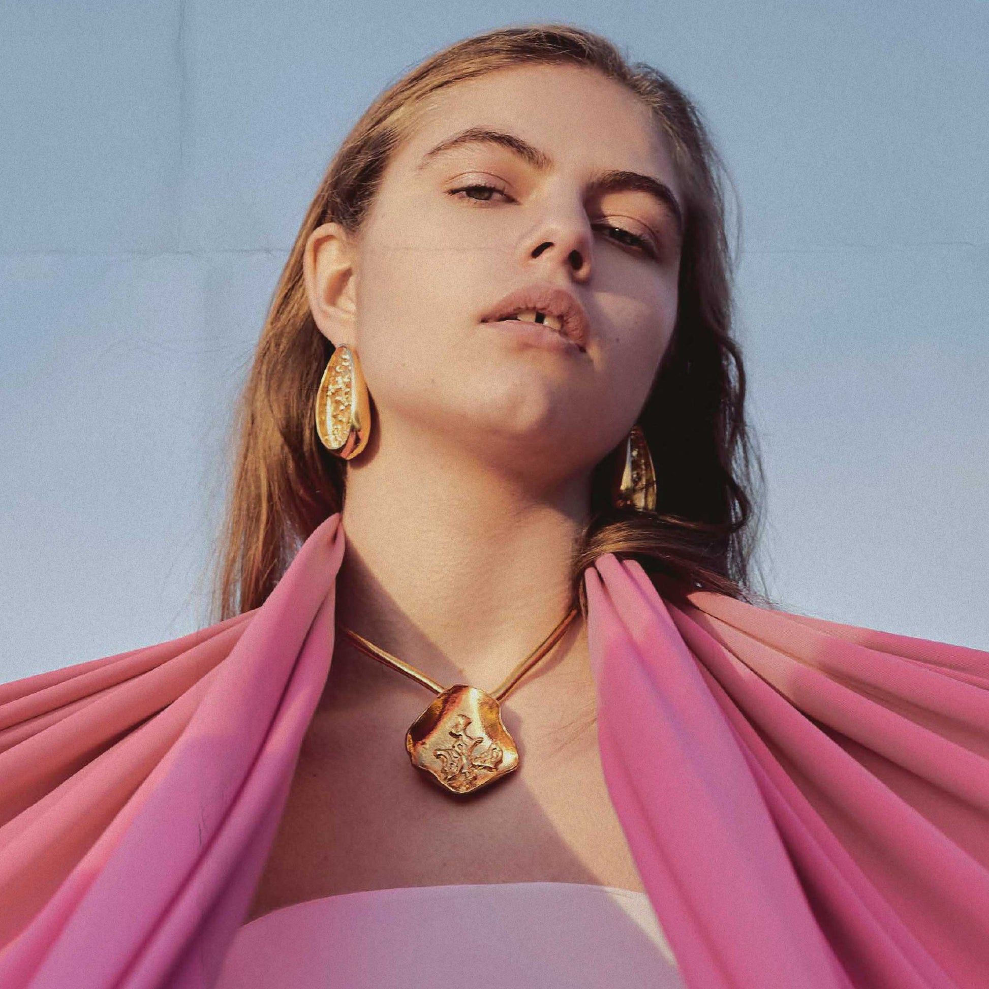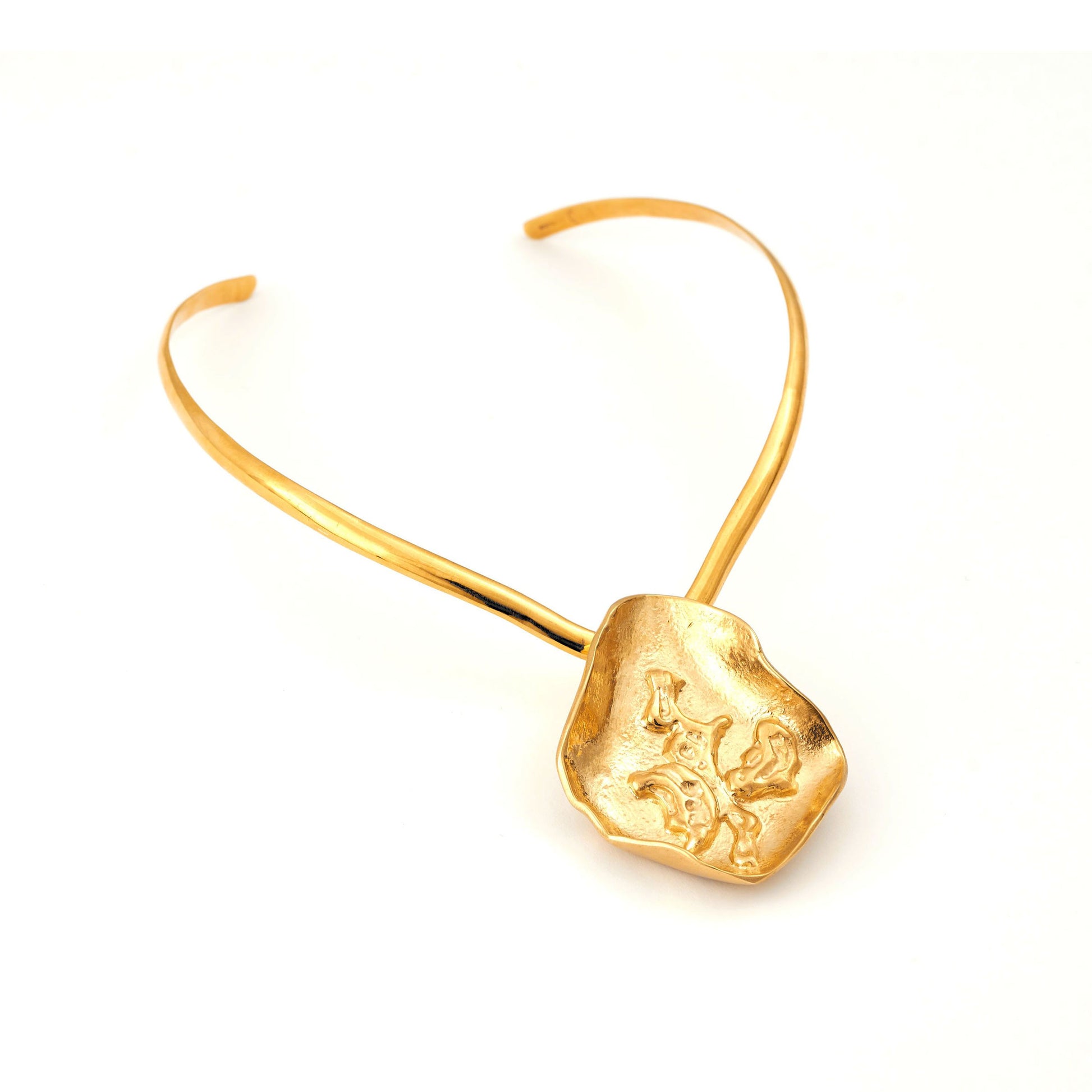 14 karat gold plated brass statement making pendant necklace is made from a wax carving and is inspired by natural forms just as flowers. It is big, bold and fashion foward.