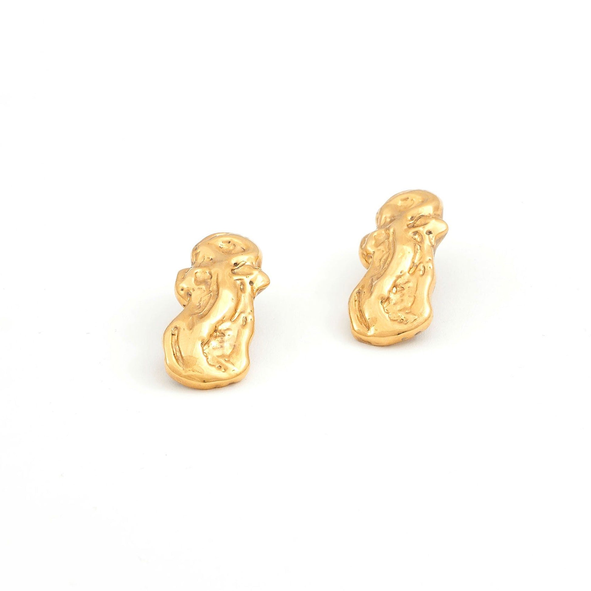 14 karat gold plated brass organic shaped earrings with gold filled posts. As the title suggests, these elegant, sculptural earrings are inspired by forms found in nature. They are made from wax carvings and make a subtle statement.