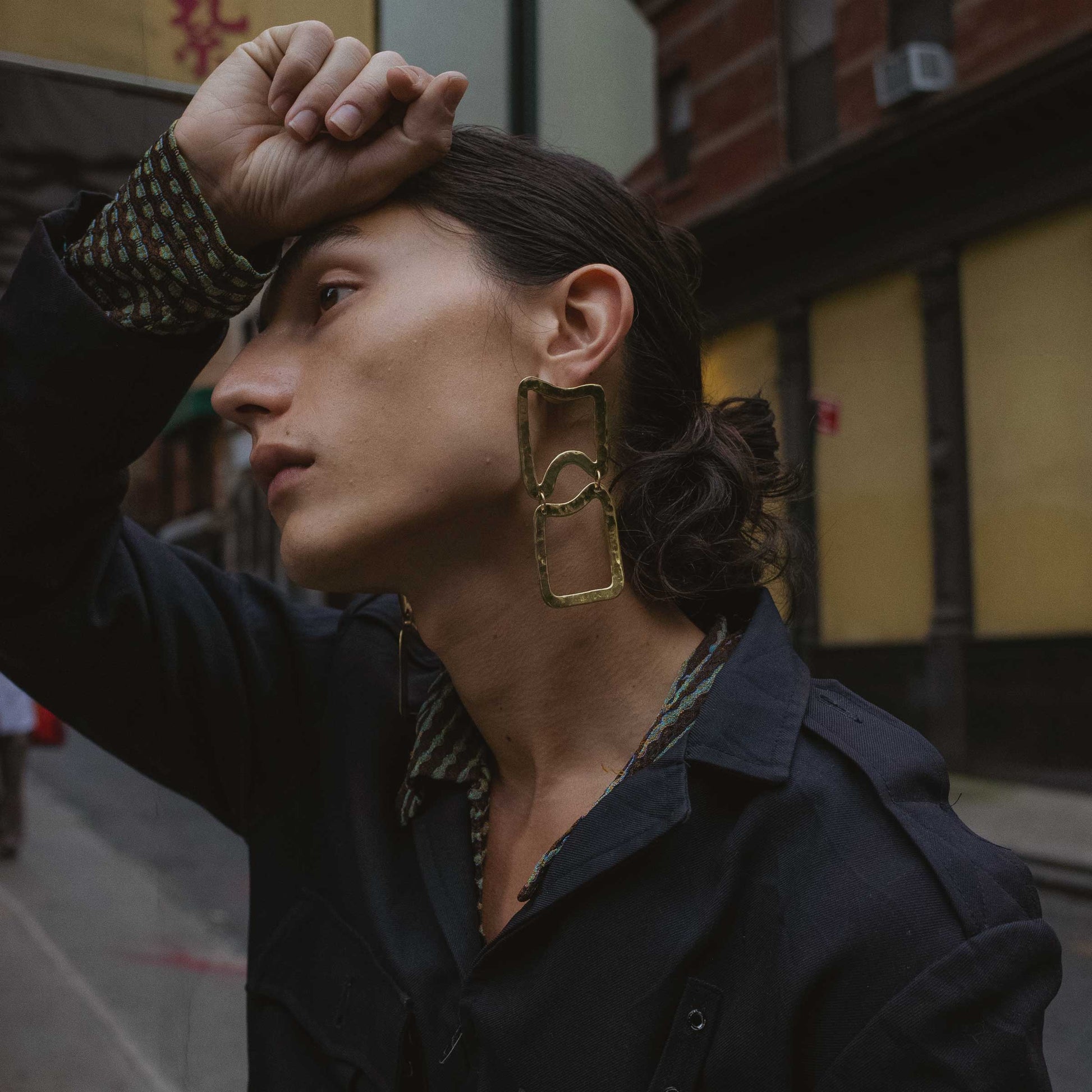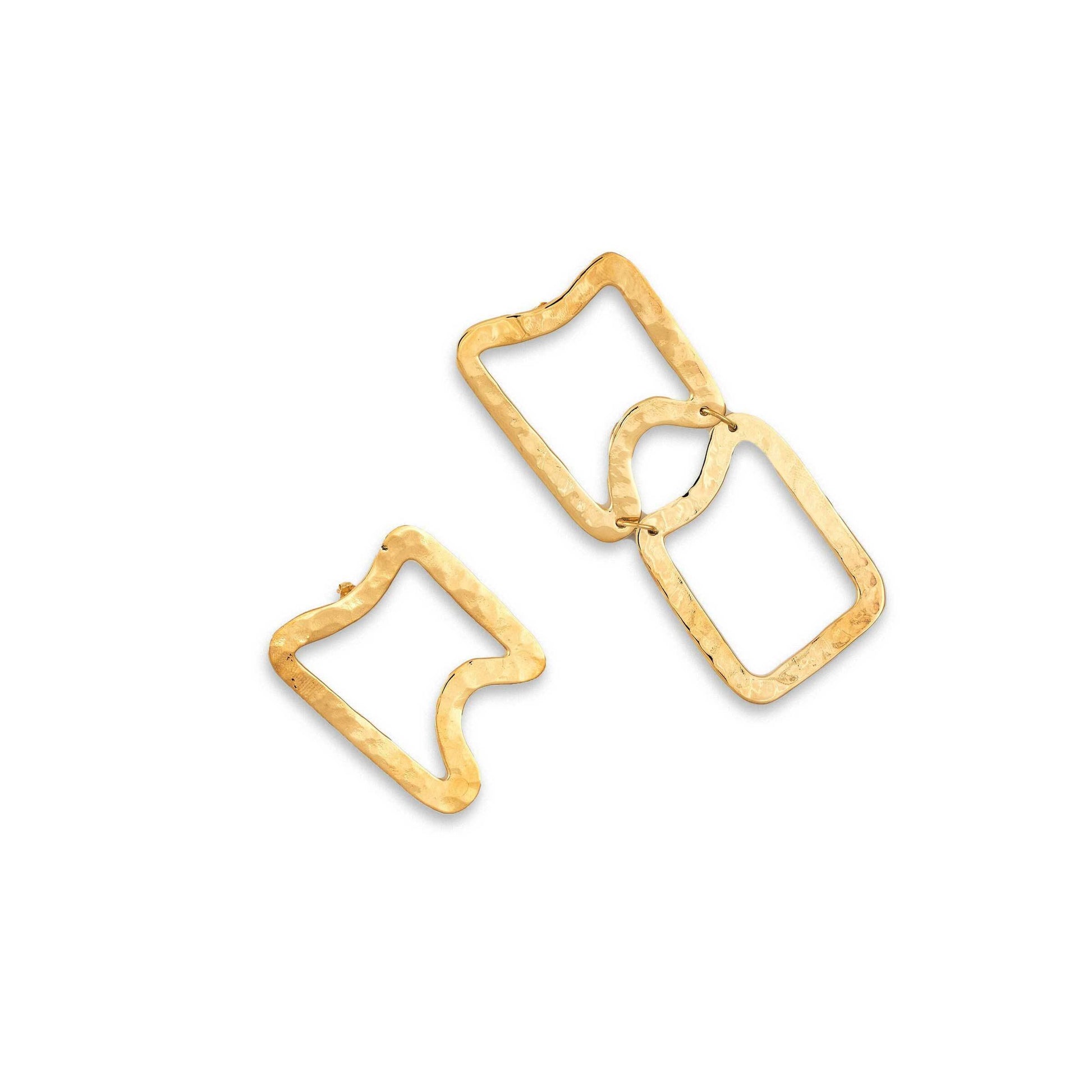 This pair of 14K vermeil earrings is intentionally mismatched for a fun, fashion forward feel. They are hammered to give texture and make a bold statement.