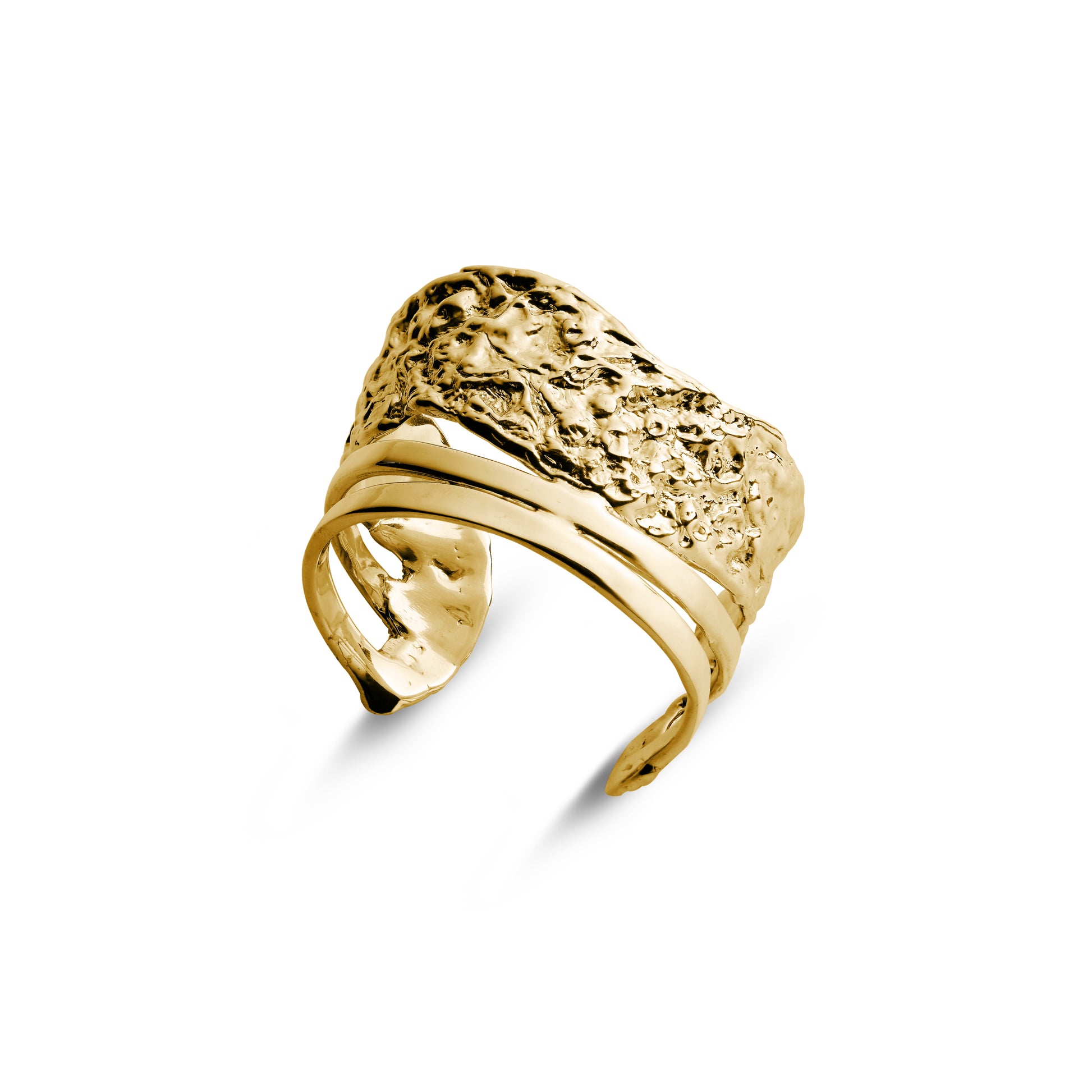 Hand-carved lost wax cuff with a mix of textures and a loose, organic shape. A bold yet classic statement.