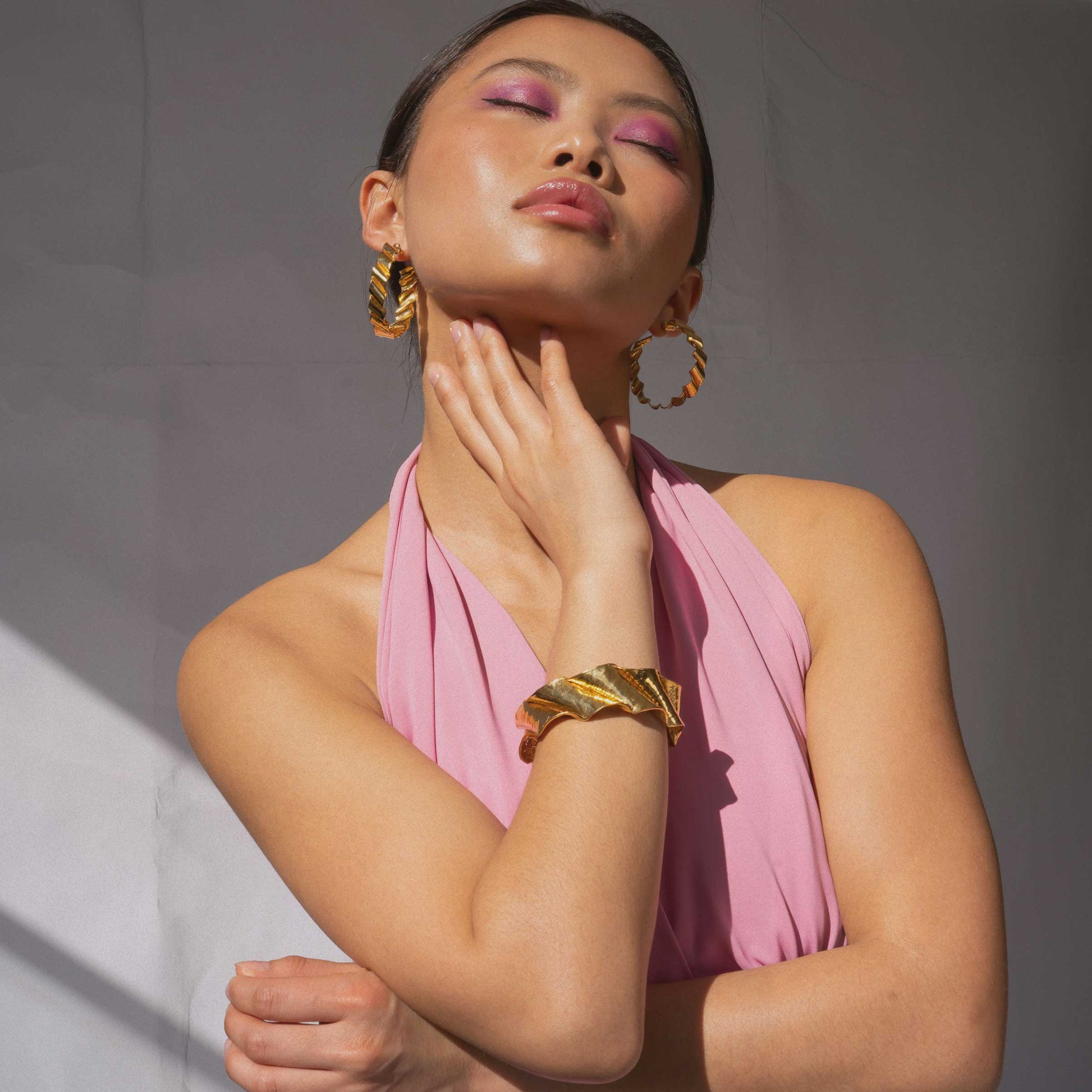 This statement bracelet is made of 14K vermeil and uses fold form technique. Can be worn alone or layered for a bold look.