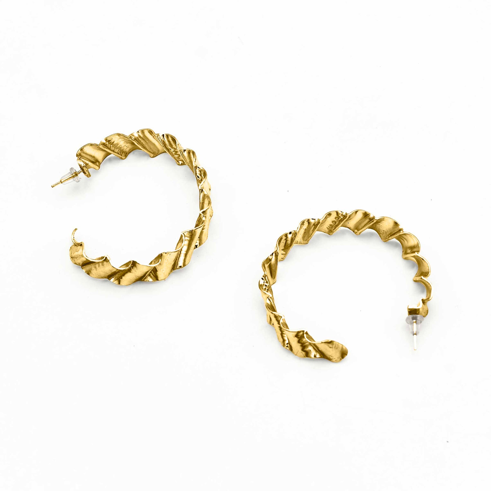 These 14k vermeil hoops are a smaller, less bold, version of the large hoops. Fold form technique is elegant and sculptural.