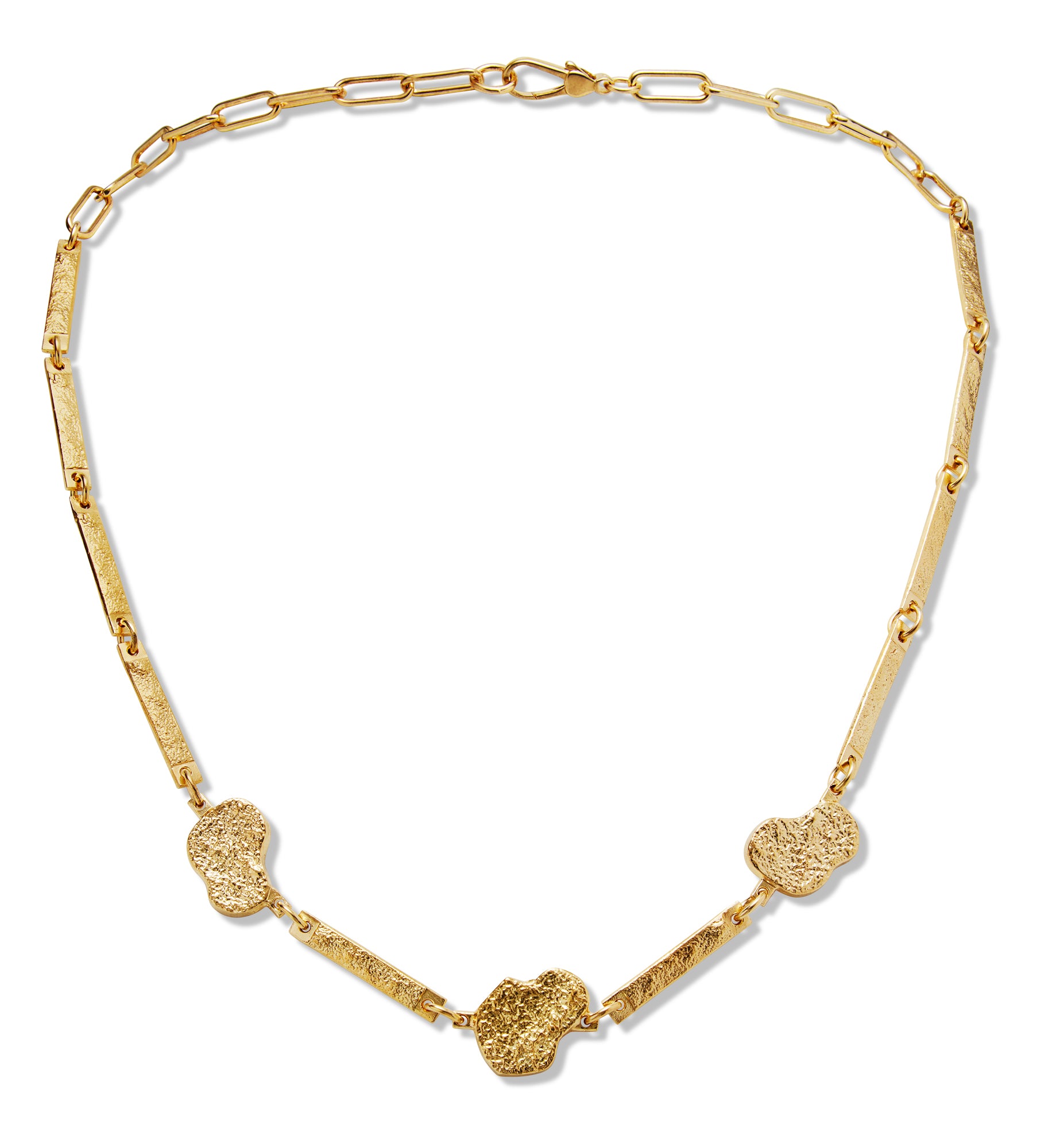 This chain incorporates organic shaped pieces and textures present in the Brutalist collection. It can be worn layered or alone.