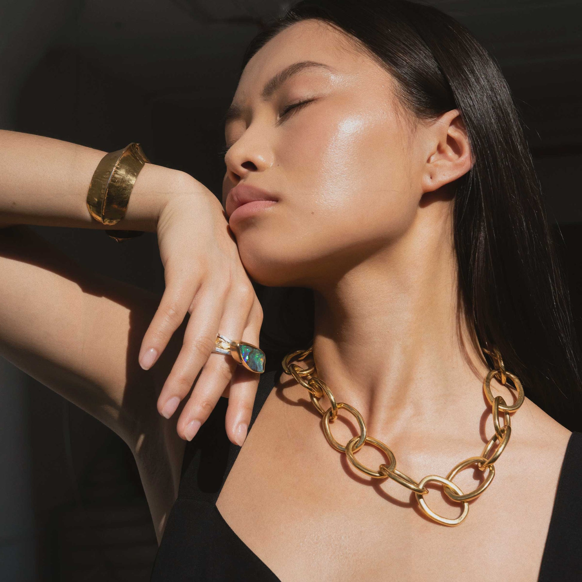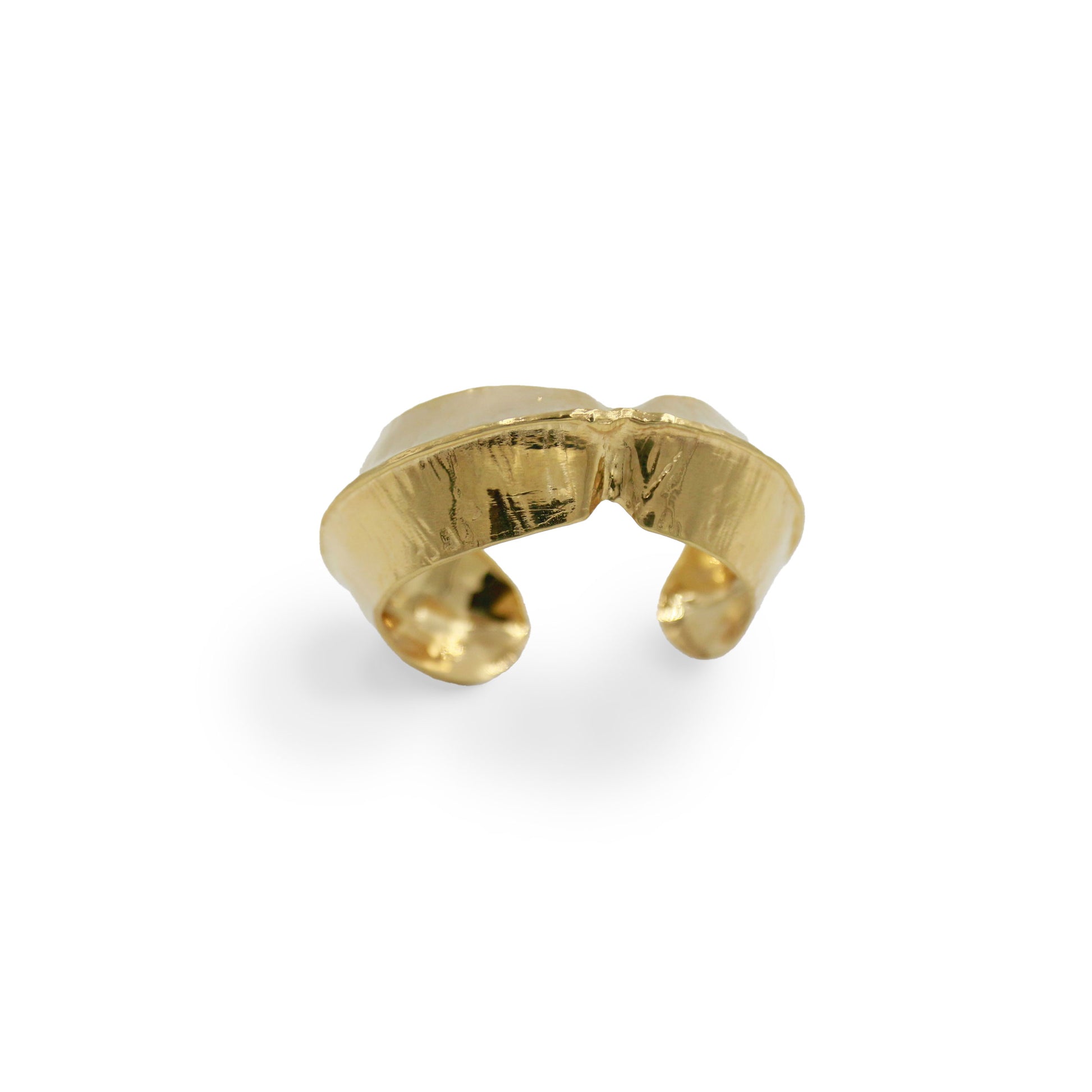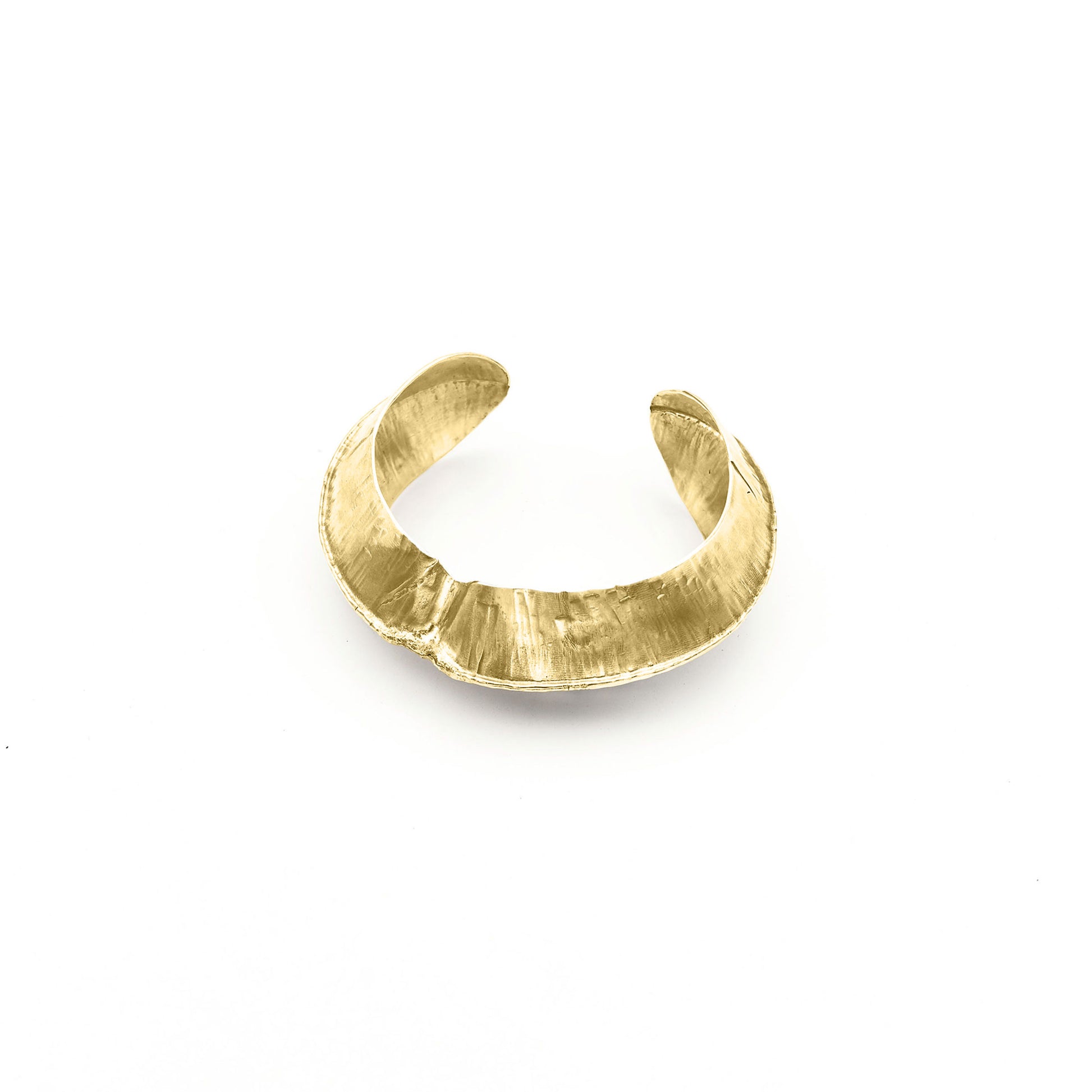 This cuff has a beautiful organic shape with a unique texture and is made of 14K vermeil.