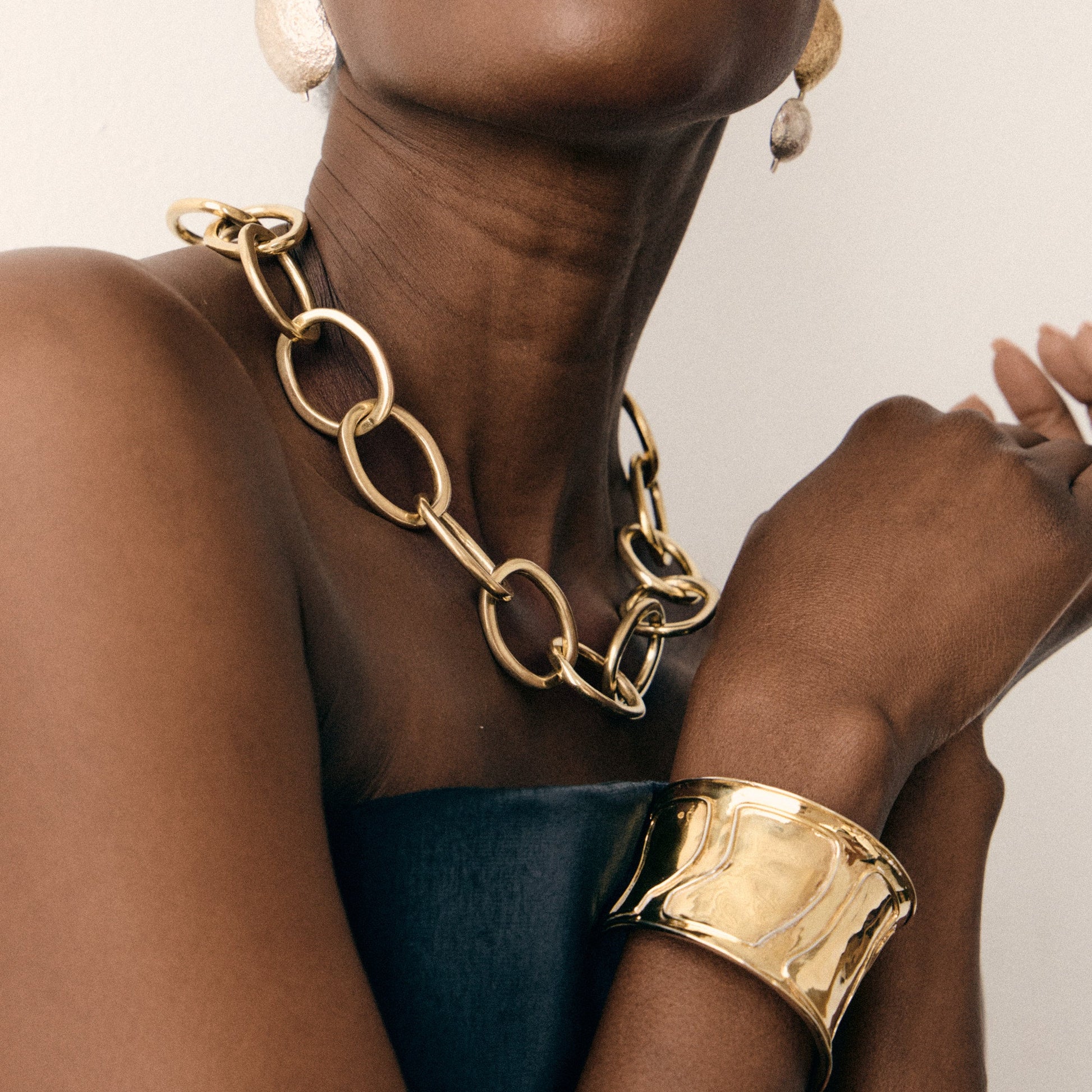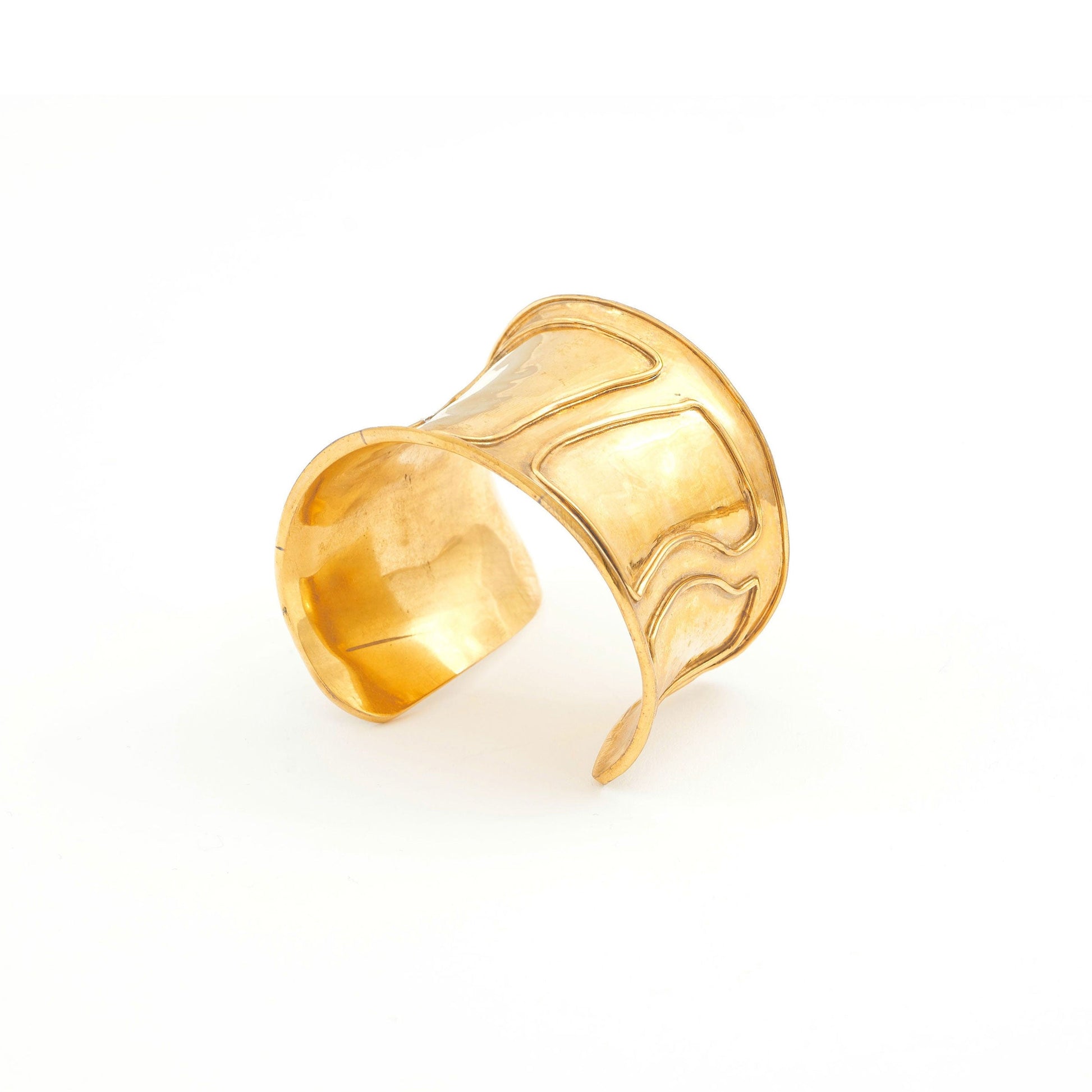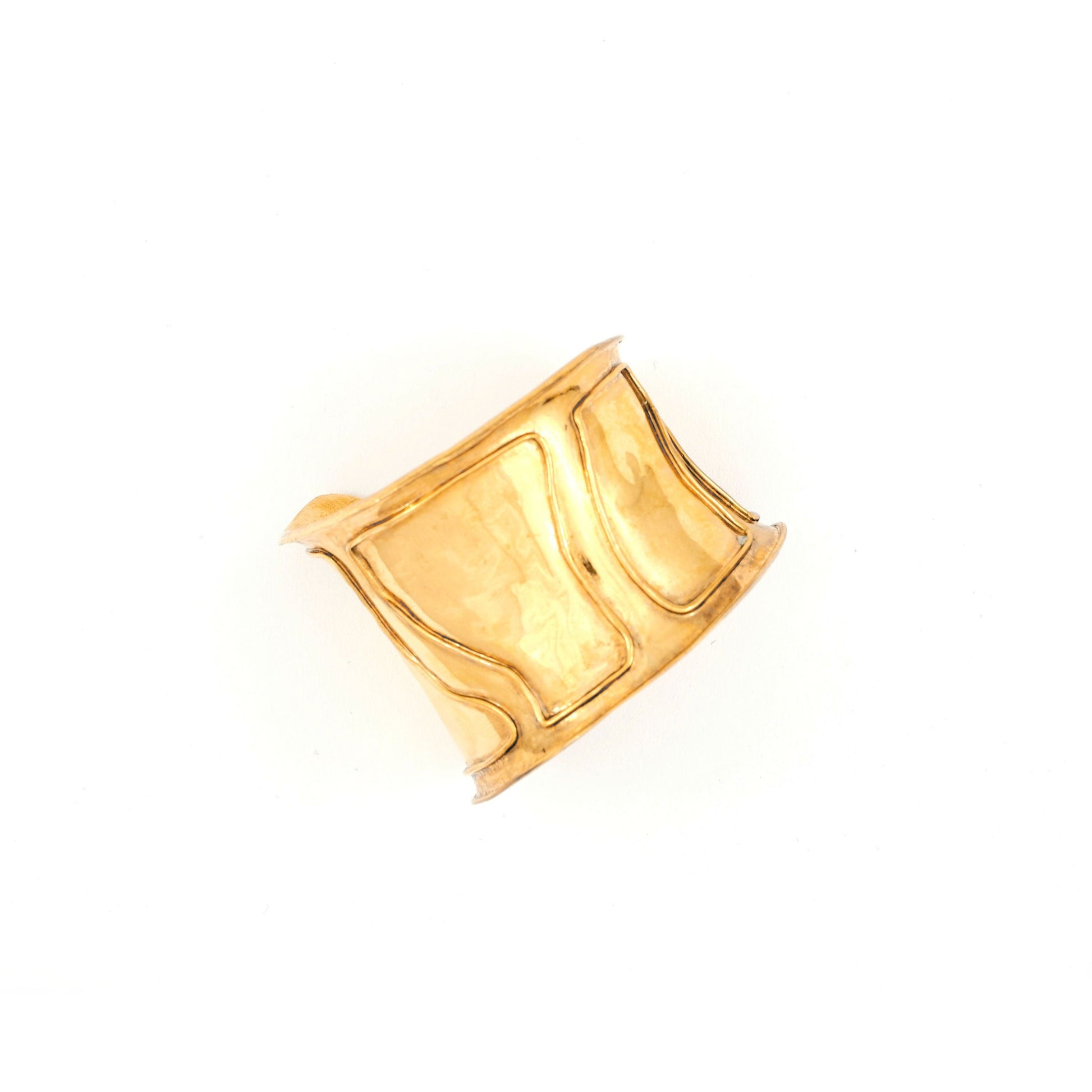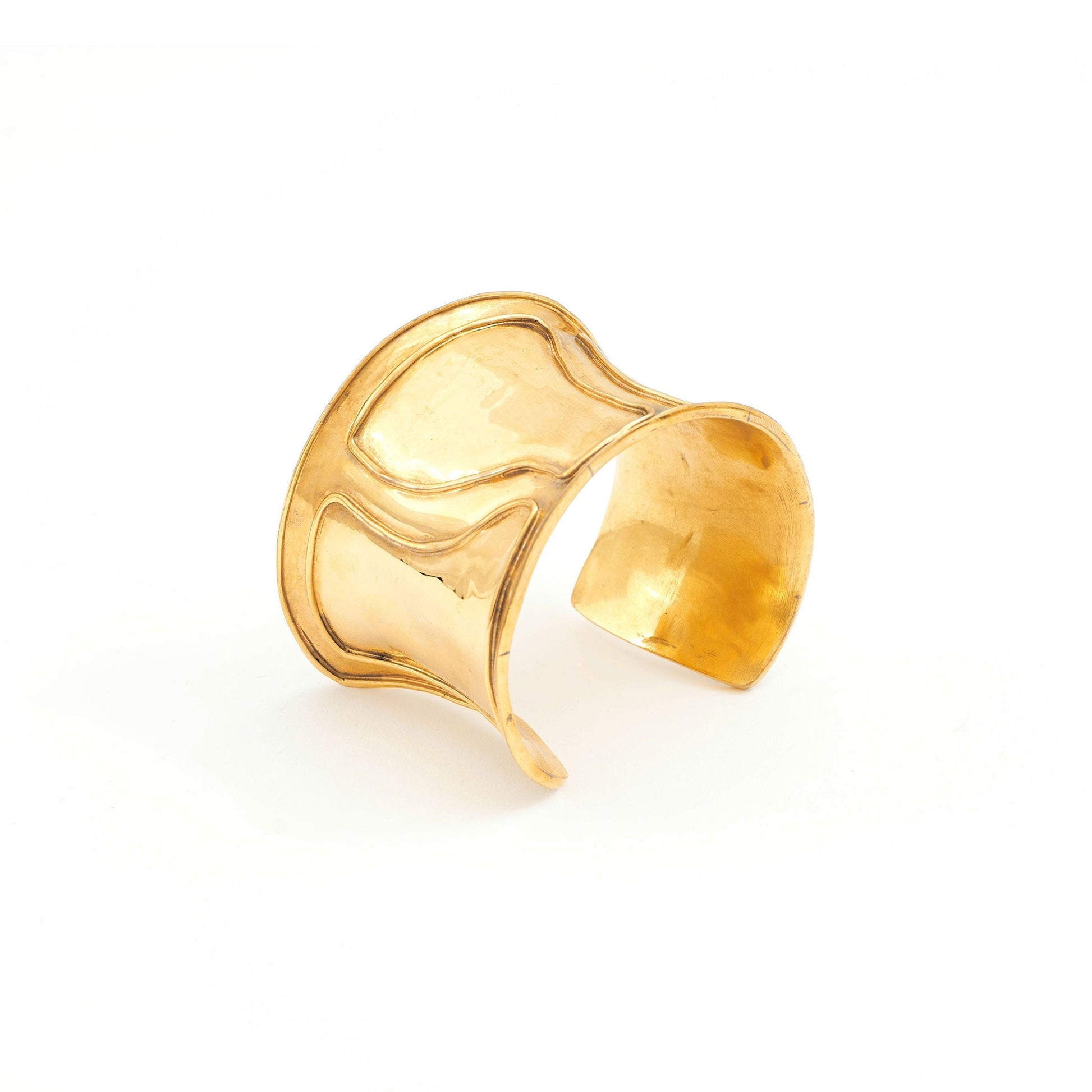 This cuff is elegant with its organic shape and curves. It is sculptural and bold and is made of 14k vermeil.