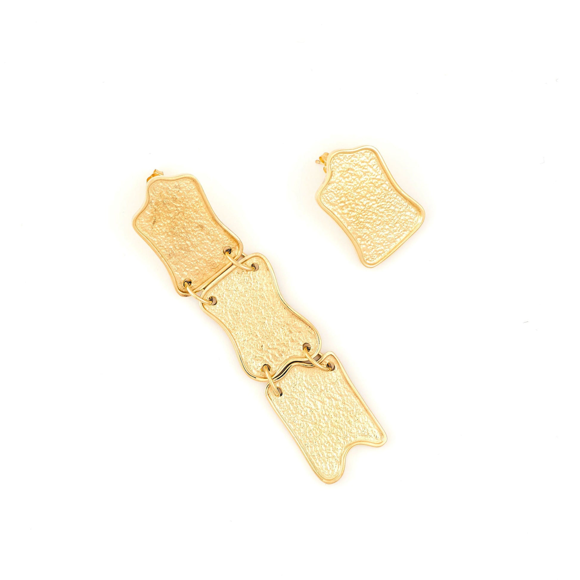 14 karat gold plated brass puzzle shaped earrings with gold filled posts. These puzzle shaped earrings make a fun, bold statement and are intentionally mismatched.