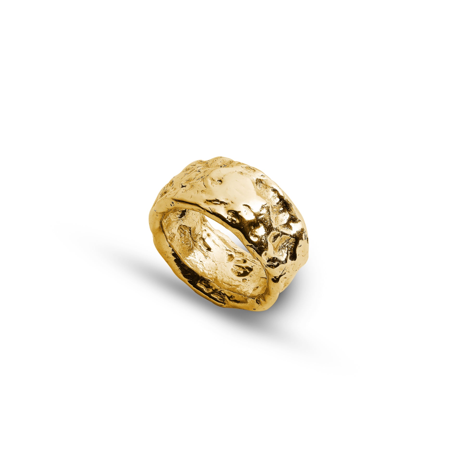 Sterling silver ring made using lost wax casting features a rough, organic texture and shape. Can be worn alone or stacked for a bolder look. Available to ship in size 6.5.