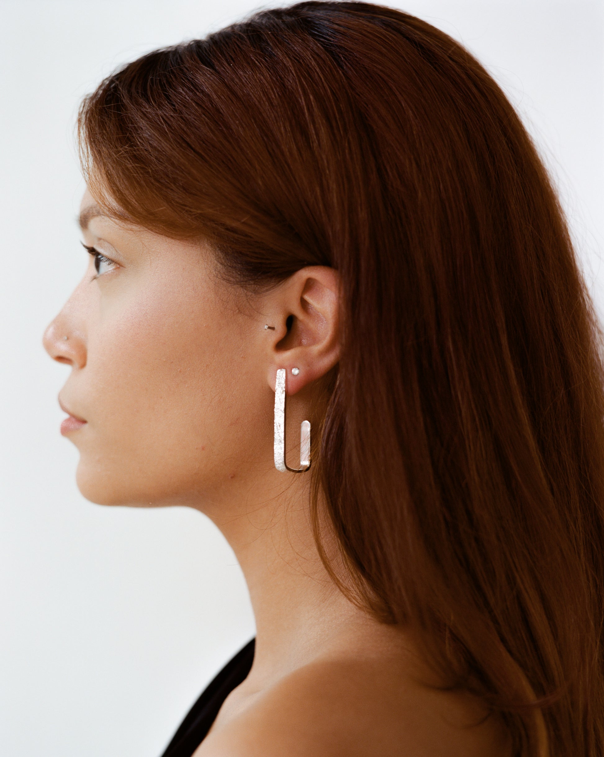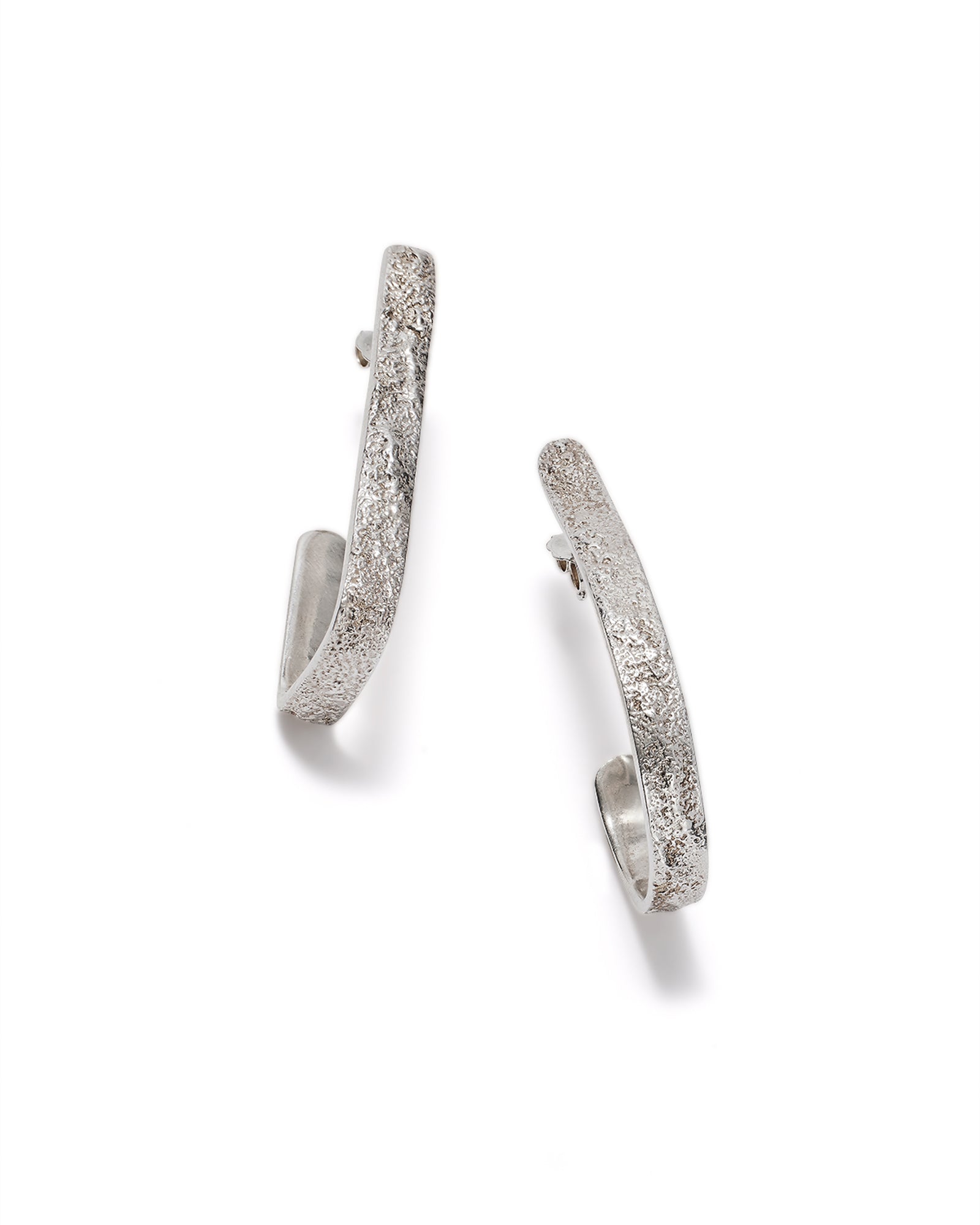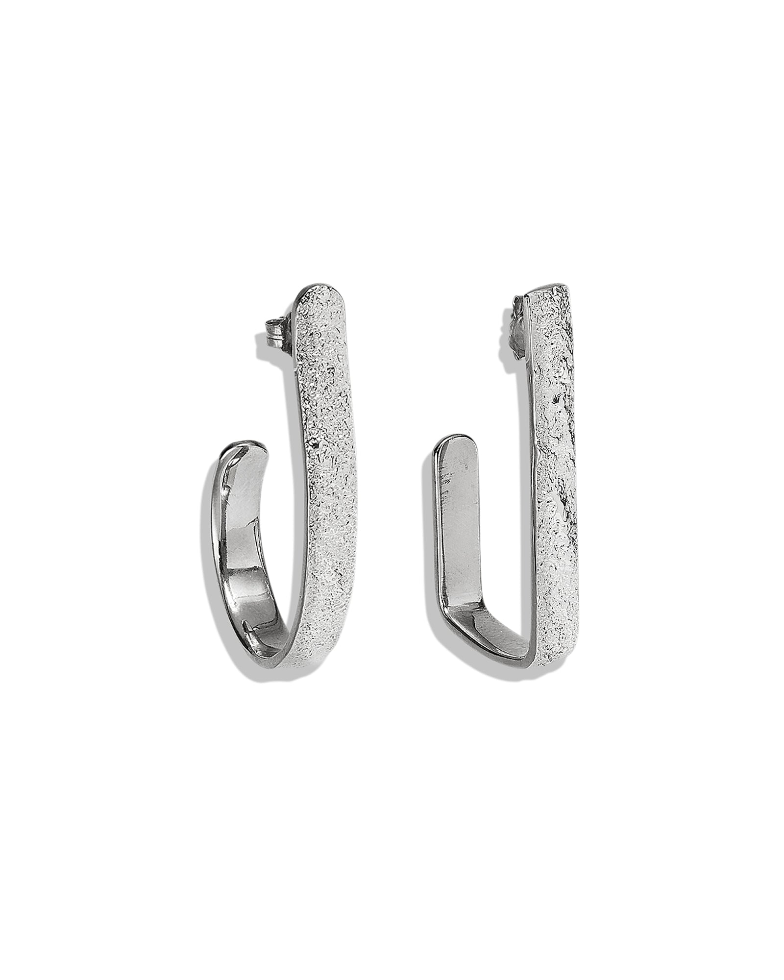 These earrings are asymmetrically shaped with a rough texture, making them unique and fun.